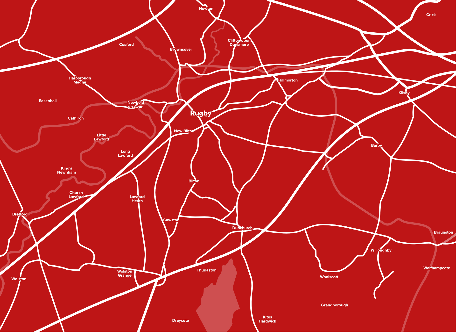 The branding uses a bold red colour palette for instant recognition and impact, paired with map-based graphics highlighting Rugby and its surrounding areas—reinforcing their connection to the community they serve. To support both digital and print marketing efforts, I also designed a custom set of icons representing their range of services, helping create a consistent and flexible visual language across all platforms.